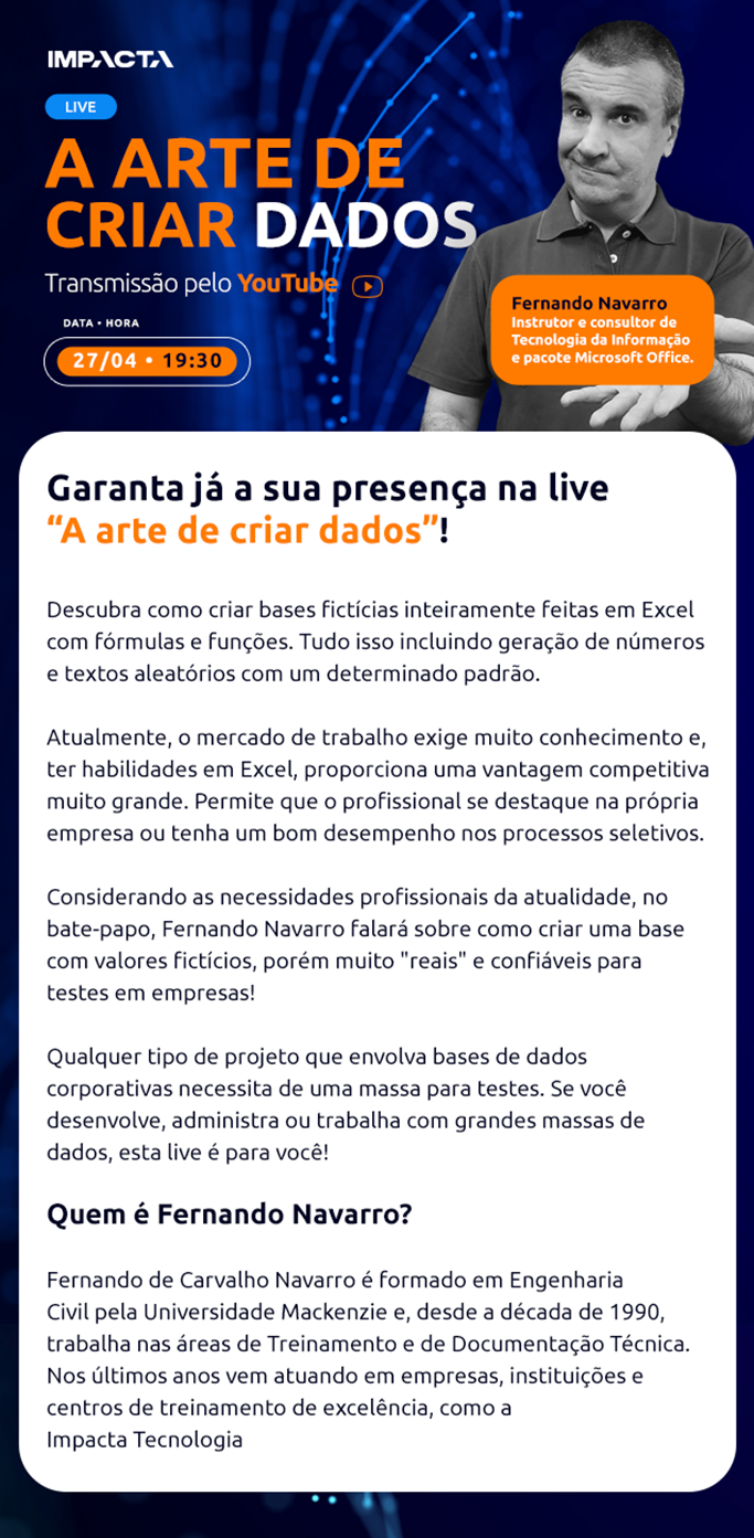 Impacta Tecnologia Conhecimento sem limites! Desde 1988 essa é a mentalidade que rege a missão da Impacta no treinamento de profissionais especializados e preparados para assumir posições de liderança nos mercados de TI, Gestão e Design.