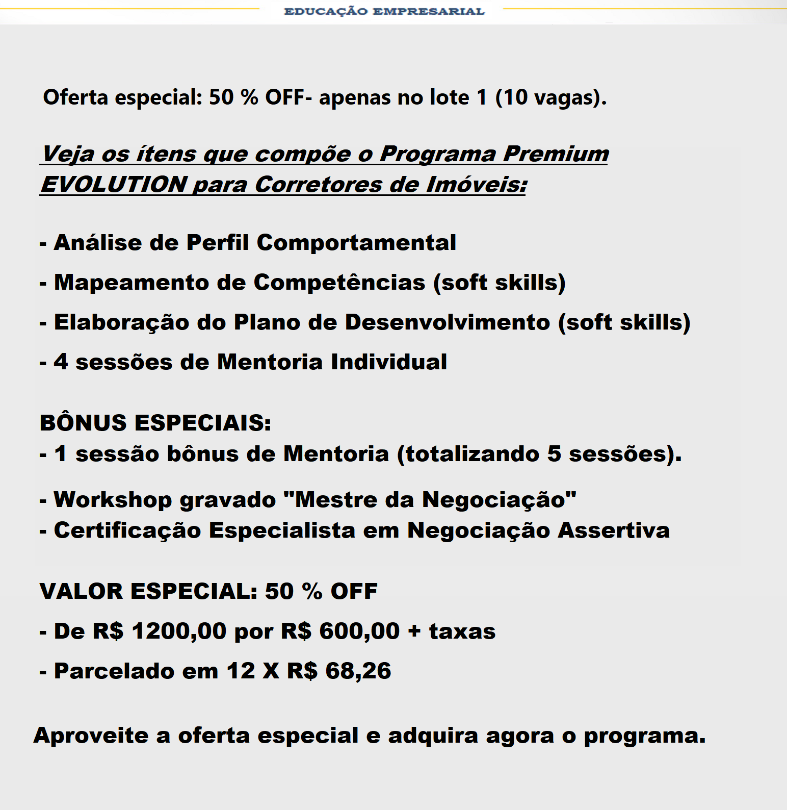 Conheça agora cada ítem que compõe a Mentoria Premium EVOLUTION: