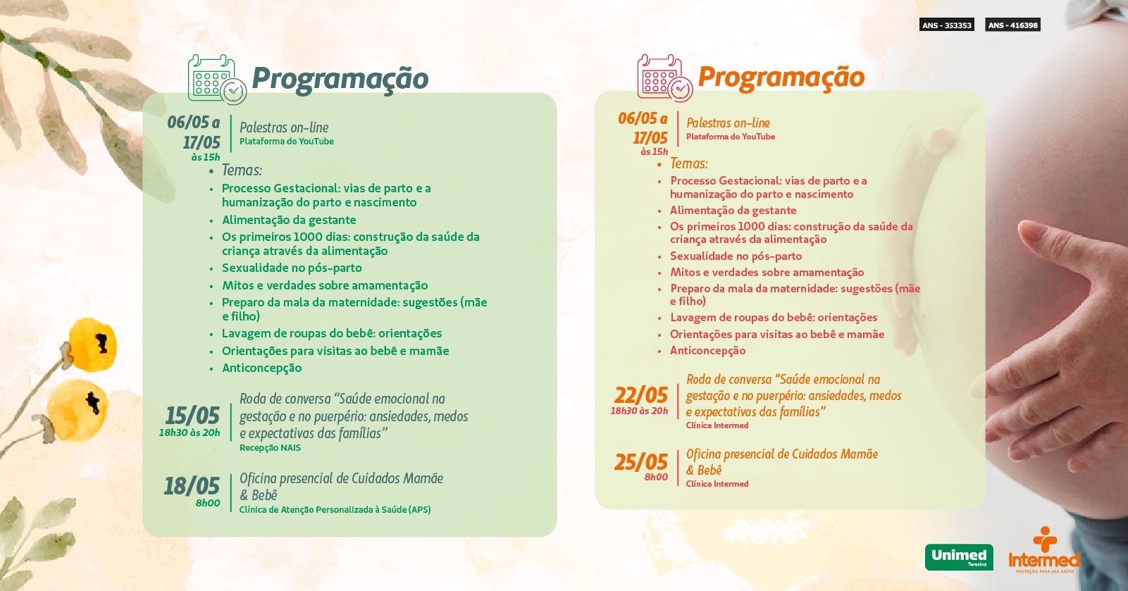 O curso Nascer retoma a tradição do Sistema Unimed Teresina de oferecer suporte e informação a gestantes e suas famílias durante o ciclo gravídico-puerperal, pautado no acolhimento e na atenção integral à saúde.