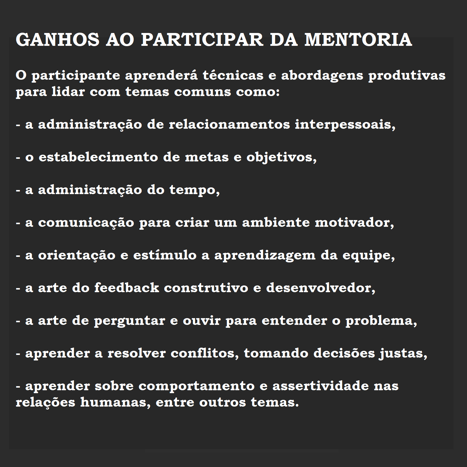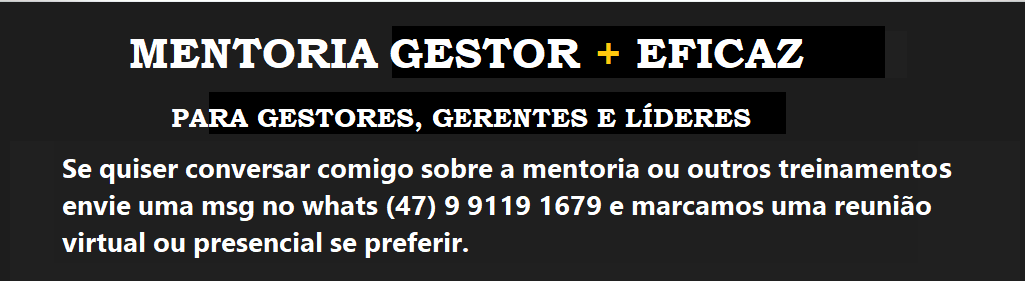 OBSERVAÇÃO: ESTA PÁGINA É DESTINADA A CONTRATAÇÃO DA MENTORIA NO FORMATO INDIVIDUAL. SE VOCÊ TIVER INTERESSE EM CONTRATAR A MENTORIA EM GRUPO PARA SUA EMPRESA FAÇA CONTATO PARA VERIFICAR AS CONDIÇÕES DE REALIZAÇÃO DA MESMA.