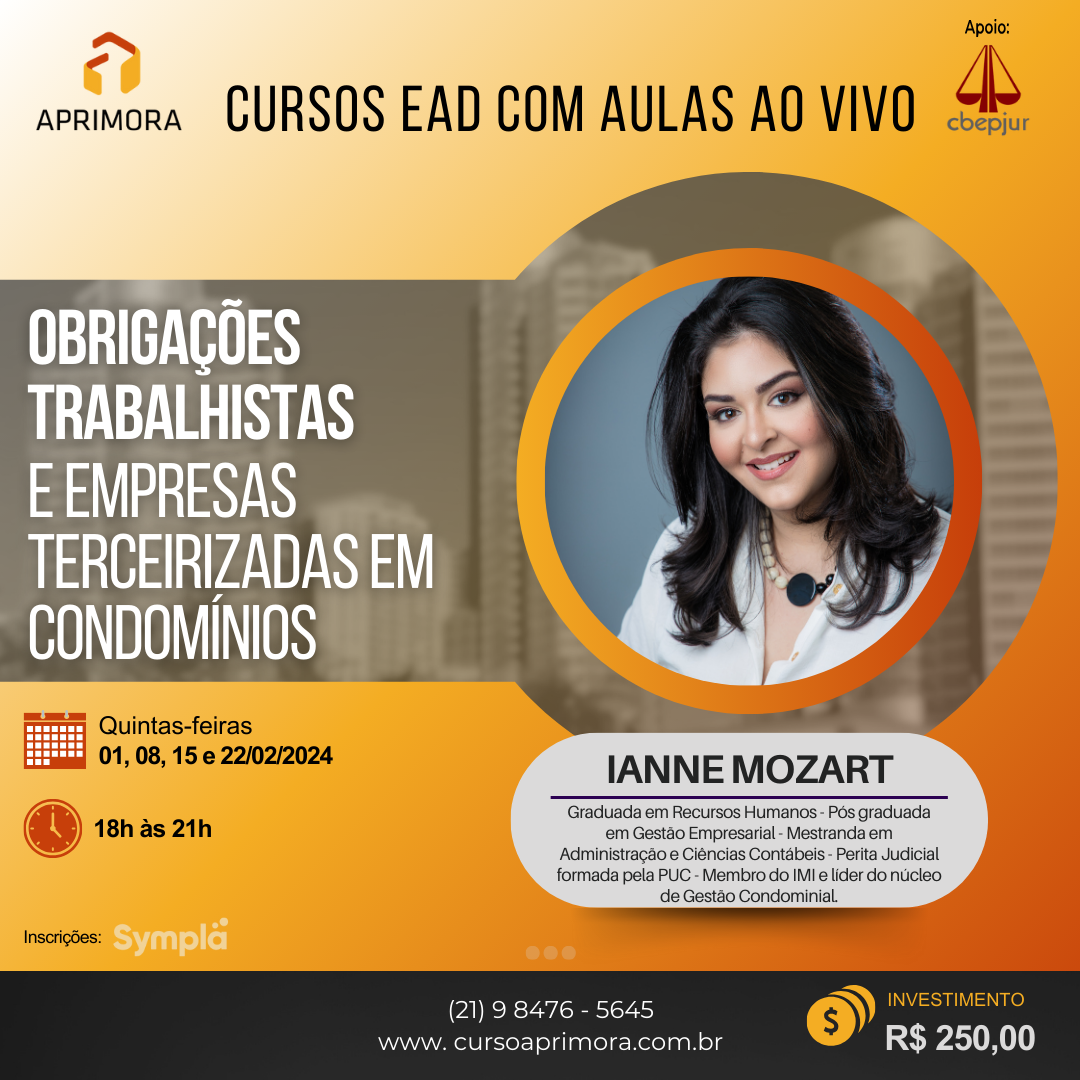 PROFESSORA Ianne Mozart, graduada em Gestão de Recursos Humanos. Pós-graduada em Gestão Empresarial. Mestranda em Administração e Ciências Contábeis. Perita Judiciail formada pela PUC. Membro do IMI e líder do Núcleo de Gestão Condominial.