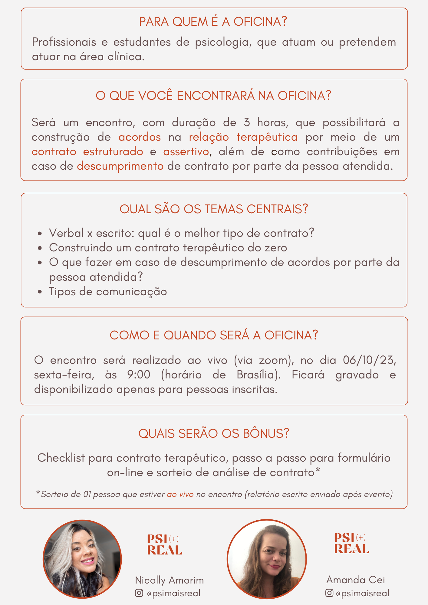 Psicólogas, psicoterapeutas e criadoras do PSI (+) REAL, acompanhando psis nos bastidores da clínica. Amanda Cei Santos Pirola (CRP 16/3526) Nicolly Emanuele Amorim dos Santos (CRP 15/6193)