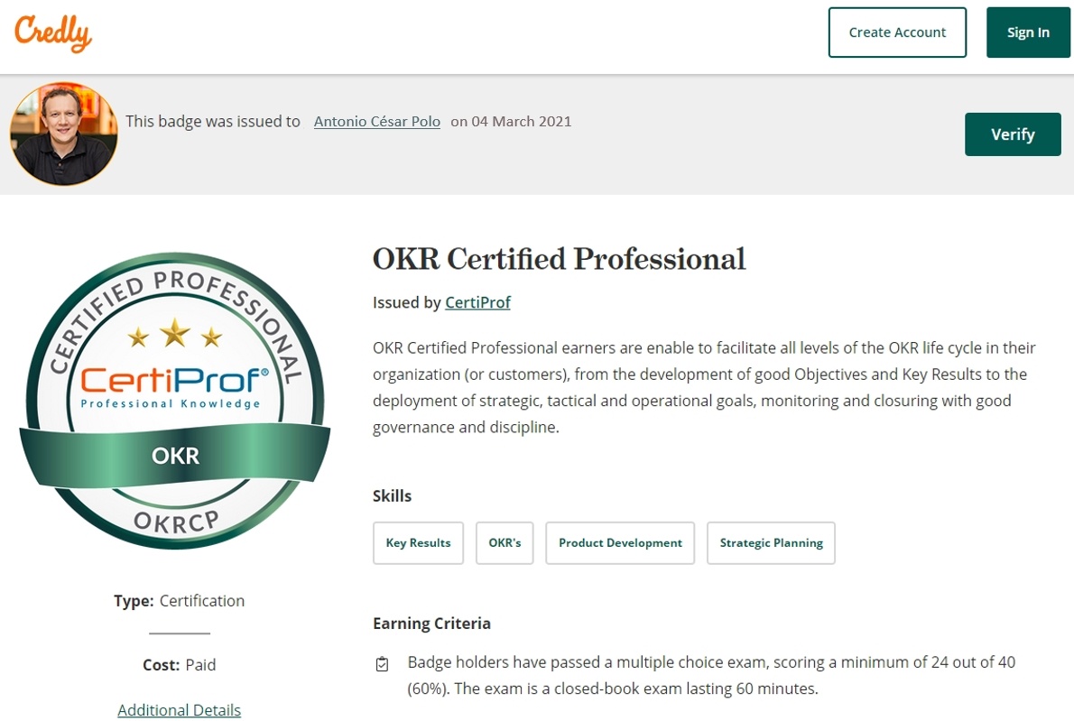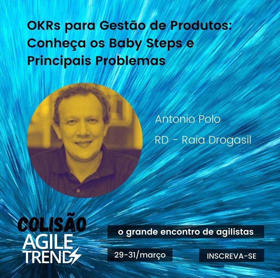 Antonio Polo foi um dos pioneiros na adoção dos OKRs em grandes empresas no Brasil. Hoje atua como consultor de OKRs em organizações de vários ramos e tamanhos. Faz mentoria para mais de 1800 colaboradores e +140 Squads em OKRs distribuídas por todo o Brasil. Disseminador do tema em grandes empresas, Meetups, Workshops, Artigos, e palestras nos principais eventos de Agilidade do Brasil como Agile Trends. O OKR Bootcamp foi o primeiro treinamento de OKRs no Brasil, e está em sua 14ª Edição. É o autor da Certificação OKRCP da Certiprof®.