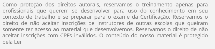 Para outros meios de pagamento diferentes do Sympla a participação no treinamento é condicionada à confirmação do pagamento, não sendo esse ingresso válido