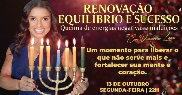 No dia 19 de fevereiro de 2025 (quarta-feira), a Vidente Vandinha Lopes realizará, pela primeira vez, um poderoso Ritual da Força, Atração e Poder, seguindo orientações espirituais para liberar bloqueios, fortalecer seu magnetismo pessoal e atrair fartura, amor e sucesso.