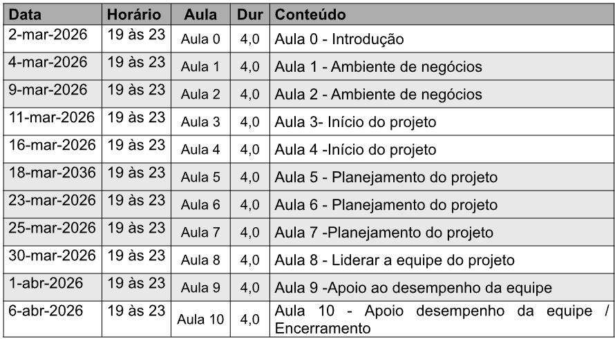 Cronograma das novas turmas: As datas das turmas na nova versão serão definidas após a liberação oficial do ECO (Examination Content Outline) pelo PMI Global, prevista para abril de 2026.