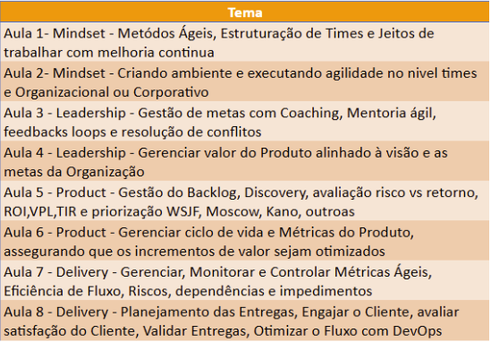 • Princípios e Mindsets Ágeis – Corresponde a 16% do exame e o foco será nos valores e princípios do Manifesto Ágil e da filosofia ágil: colaboração entre cliente e equipe, knowledge workers, liderança servidora, planejamento lúdico, comportamento p/ disseminação do conhecimento na corporação.