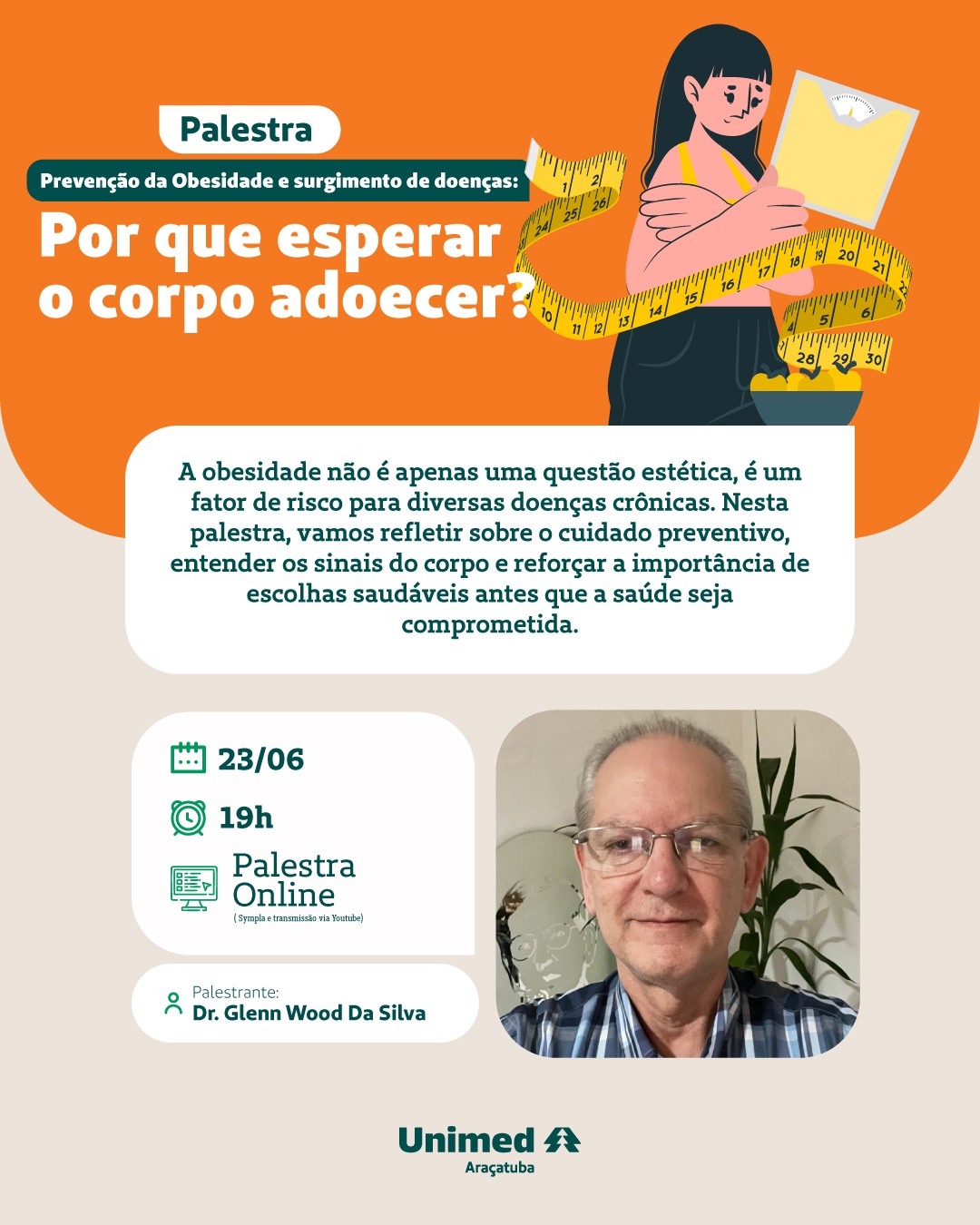 A obesidade não é apenas uma questão estética — é um fator de risco para diversas doenças crônicas. Nesta palestra, vamos refletir sobre o cuidado preventivo, entender os sinais do corpo e reforçar a importância de escolhas saudáveis antes que a saúde seja comprometida.