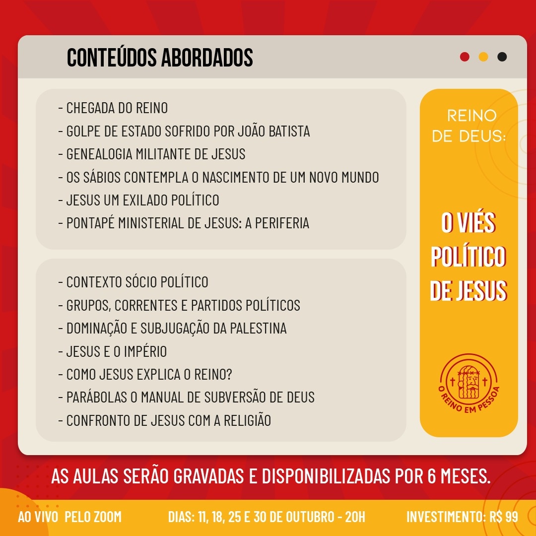 Jesus estava preocupado em mudar as coisas, em subverter a lógica do mundo, em colocar de ponta a cabeça a forma de desumanizar quer nós chamamos de sociedade.