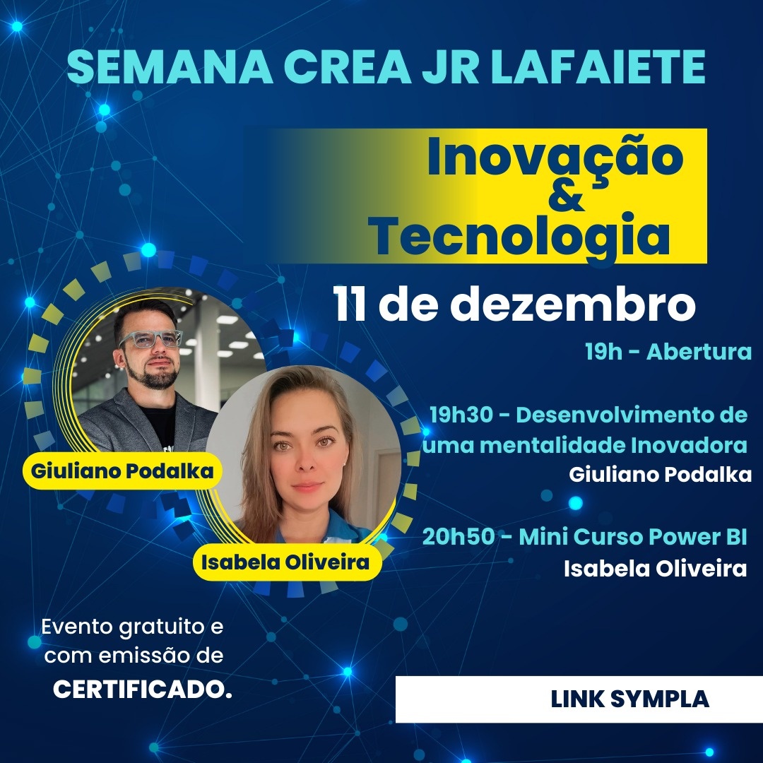 A Semana do Crea Minas Jr. é um evento imperdível que mergulha fundo no universo da inovação e tecnologia, trazendo a você uma experiência única de aprendizado e networking. Este ano, nossa programação promete inspirar e capacitar profissionais e estudantes com conhecimentos essenciais nas áreas de vanguarda.