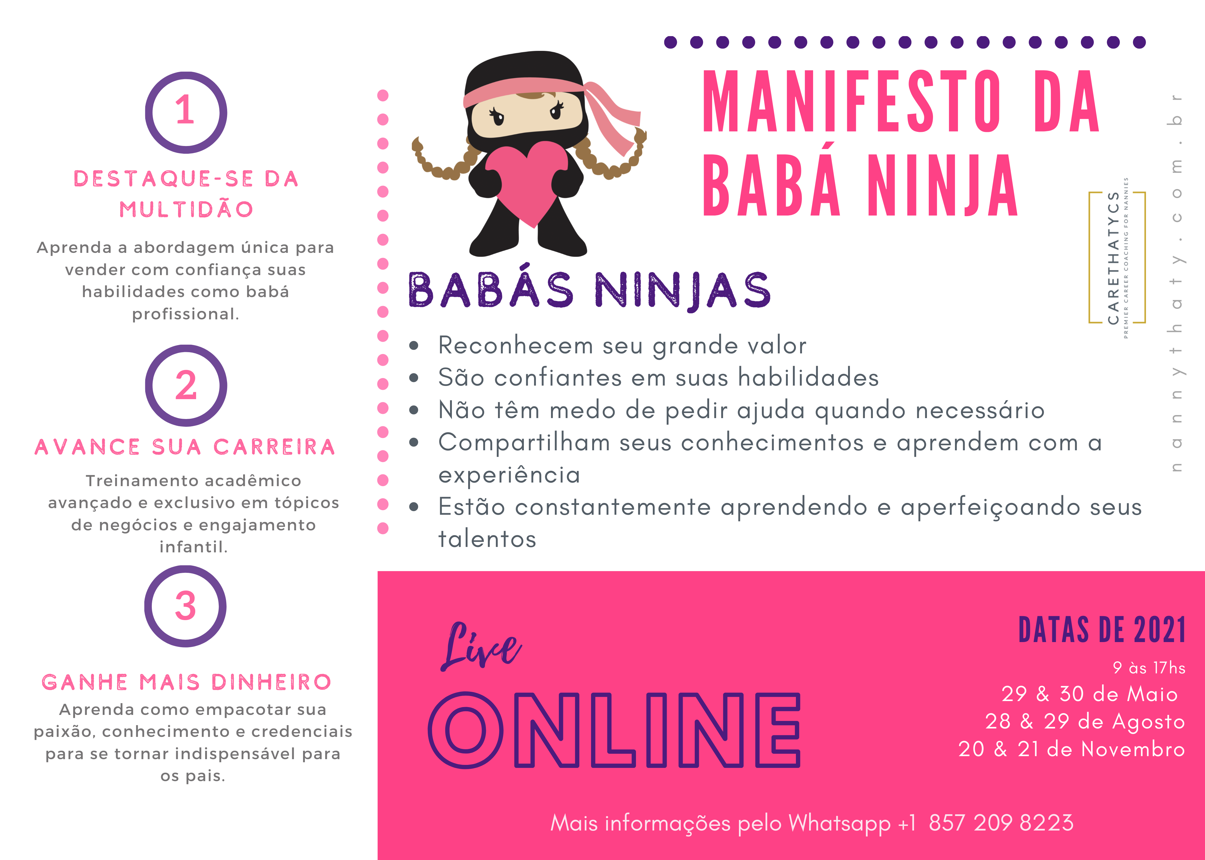 Você pode ate achar outros programas de babá por aí ... Mas nenhum deles é ensinado por uma renomada educadora, premiada internacionalmente, Mestra em Educação, PNL, e Liderança e Coaching, que tem experiência de trabalho tanto como pedagoga, consultora educacional, babá profissional e especialista em cuidados neonatais. Thaty vem altamente indicada e possui todas as credenciais necessárias para ensinar cursos de nível acadêmico que ela adaptou para atender à comunidade de babás.