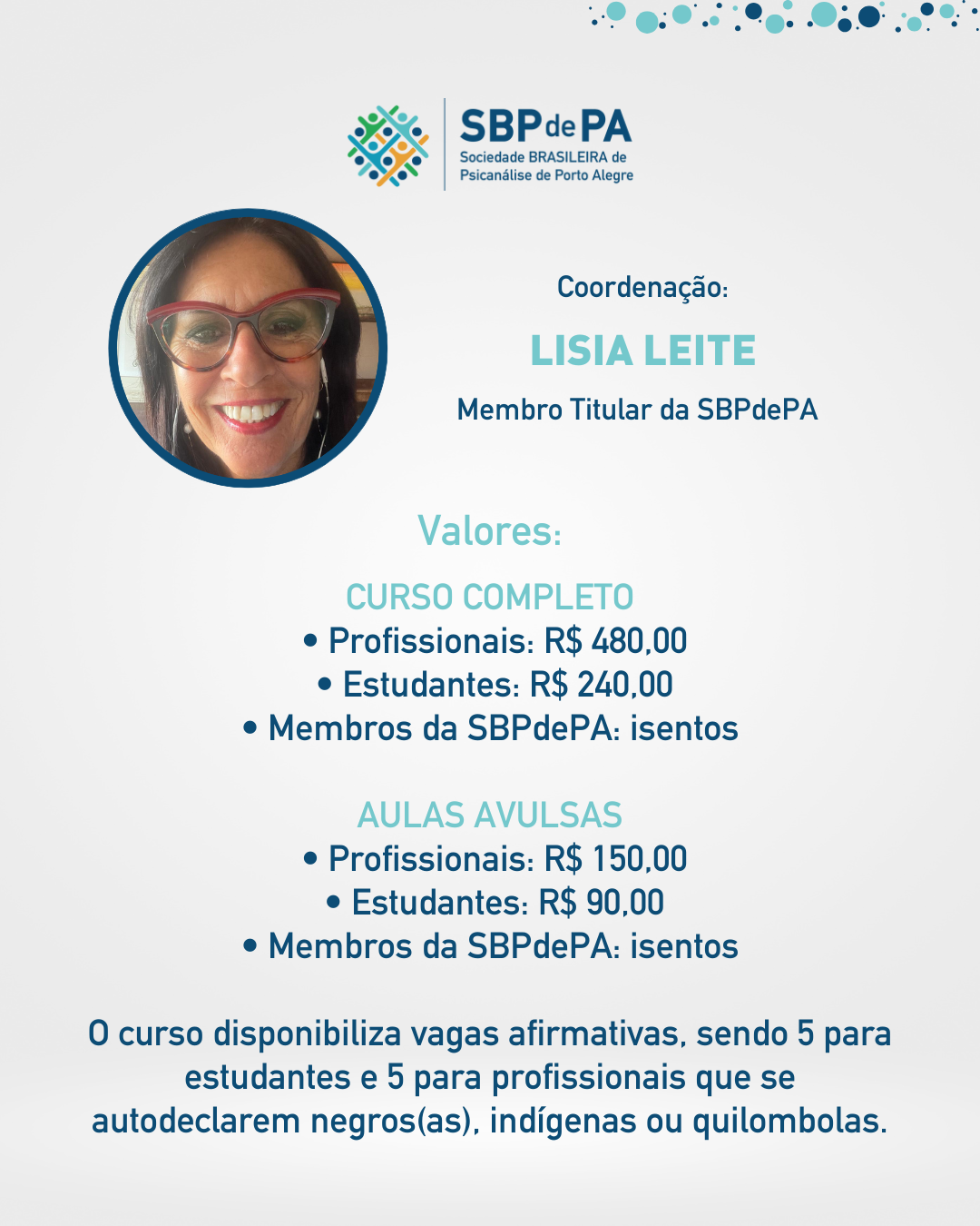 a interessados na temática, o curso reafirma o compromisso da SBPdePA com a