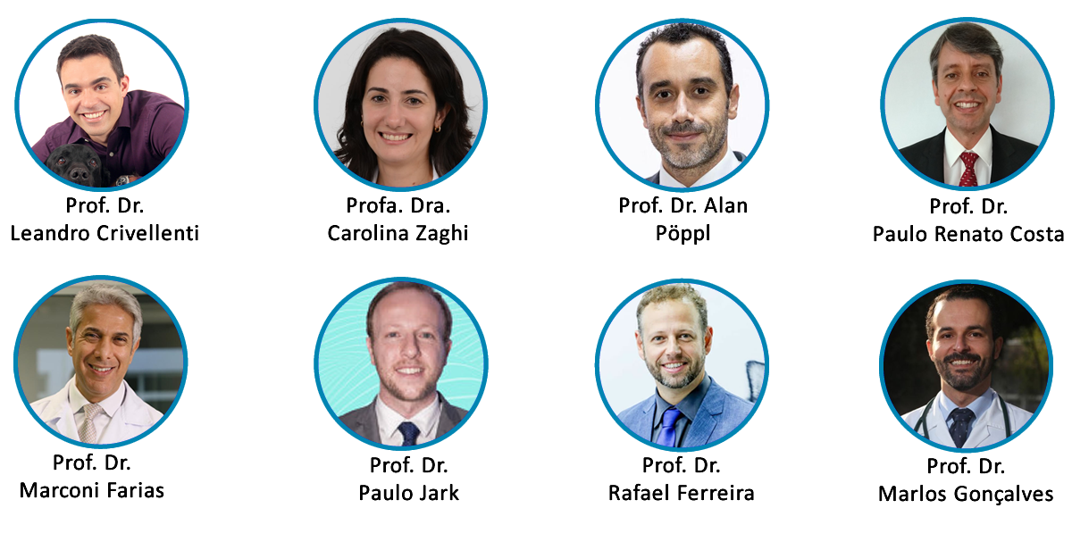 Estrutura do Simpósio: O Simpósio ocorrerá de forma integralmente online, em formato remoto integrativo, no sábado dia 31 de julho de 2021, e contará com 9 palestras de professores renomados nas várias especialidades clínicas médico veterinárias relacionadas aos temas propostos.
