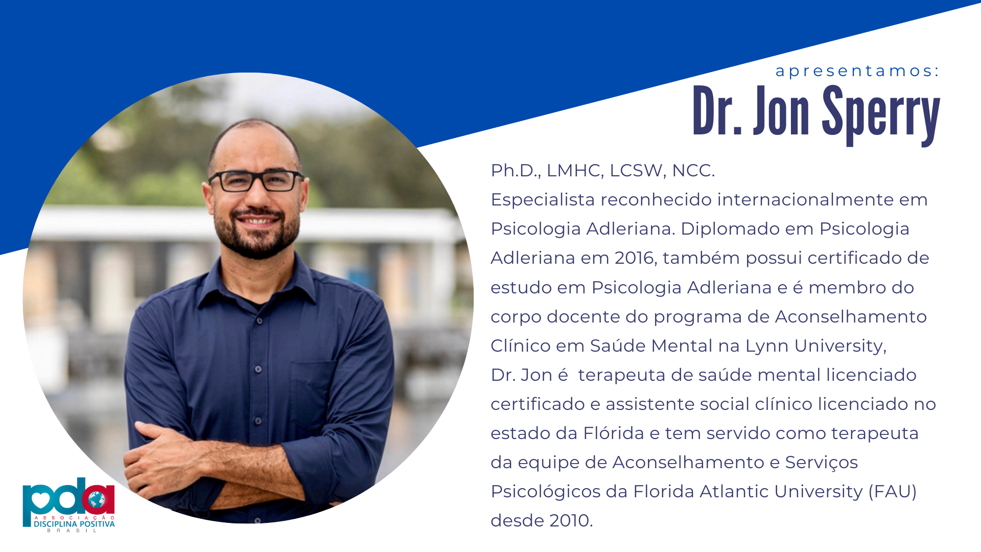 Em 2 horas, o Dr. Jon Sperry ensinará e demonstrará técnicas, dará exemplos de casos e pedirá aos participantes que participem de várias dinâmicas para aprender a teoria e a prática de aconselhamento adleriano.