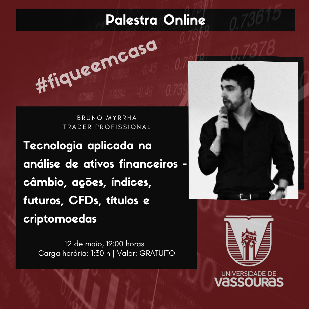 Bruno Myrrha é trader profissional com experiência de 13 anos em mercados financeiro, atuando com derivativos, índices, ações, commodities, câmbio e criptomoedas. Sua formação acadêmica é graduação em matemática com especialização e mestrado, também é programador, pesquisador, professor de cursos de graduação, pós-graduação, autor de livro e diversos artigos científicos de caráter nacional e internacional.