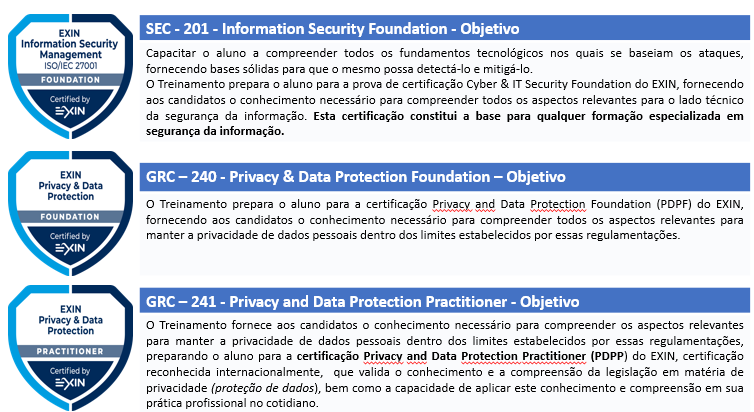Para treinamentos EXIN Privacy & Data Protection Foundation & Practitioner:
