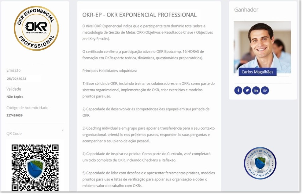 Certificação Reconhecida: OKREX®, certificada pelo OKR Instituto Brasil.