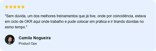 Pioneiros na adoção de OKRs em grandes empresas brasileiras (+1000 pessoas), criador das principais certificações nacionais e internacionais e do primeiro treinamento (em 2016). Já liderou adoção de OKRs nas maiores empresas do Brasil. Formou mais de 1.000 profissionais em 80+ turmas do OKR Bootcamp e apoiou grandes organizações como Itaú, Santander, IBM e PwC em jornadas de agilidade e evolução de maturidade.