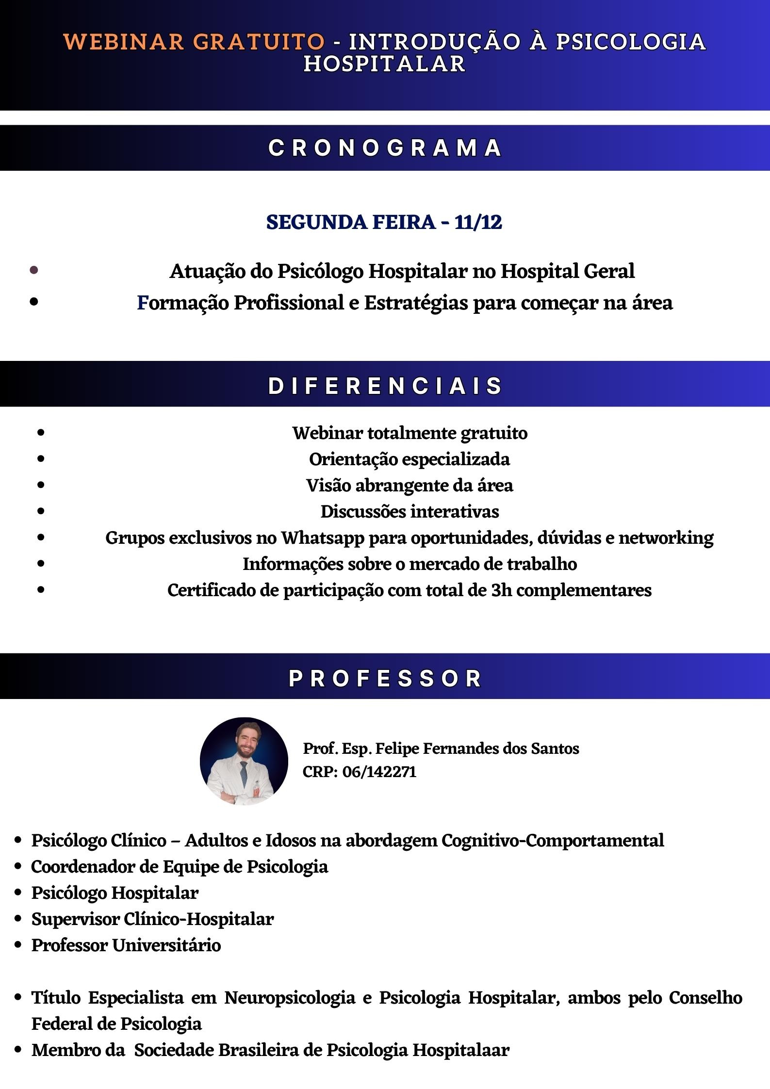 Webinar Gratuito - Introdução à Psicologia Hospitalar