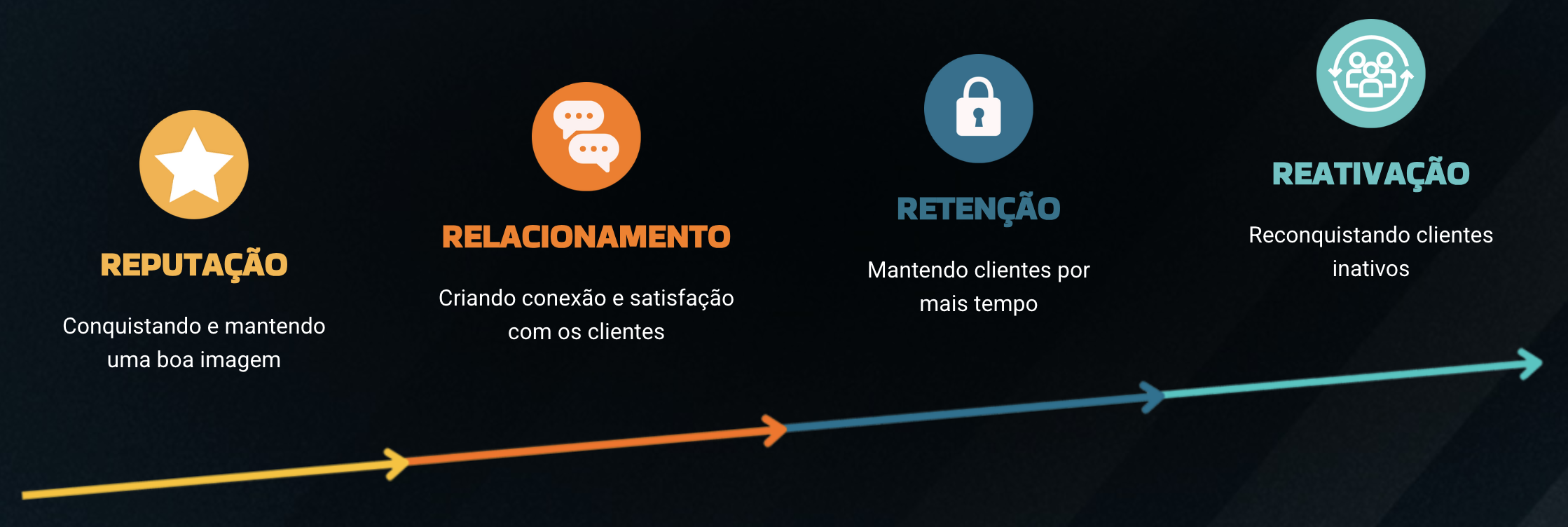 • Estratégias de automação via WhatsApp, SMS, e-mail e outros canais.