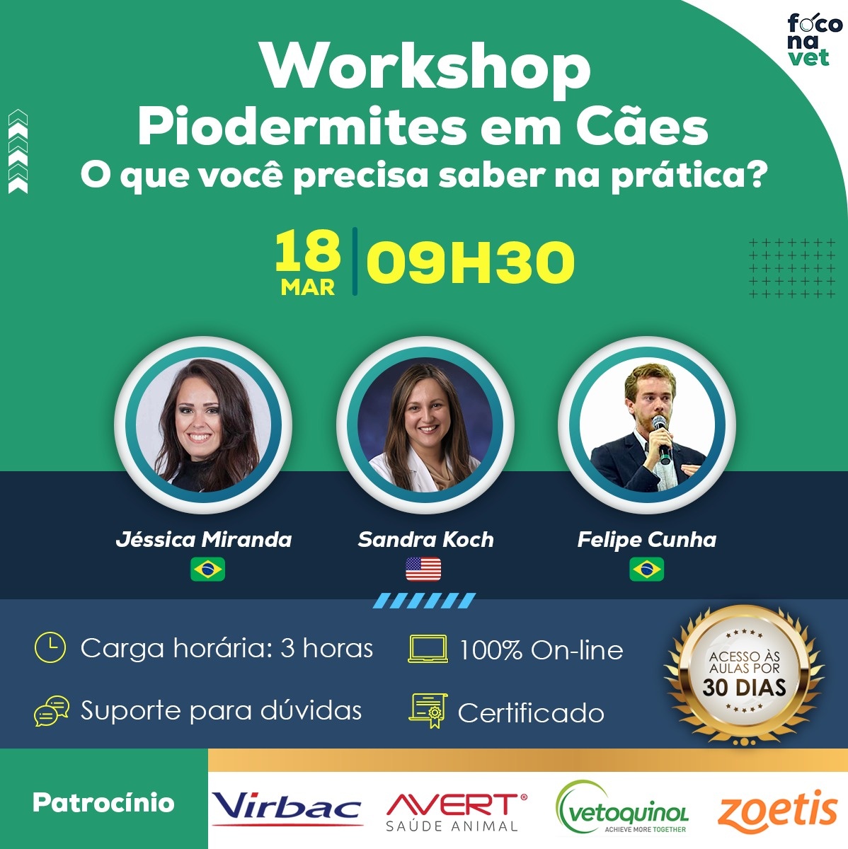 A nossa empresa é dedicada no treinamento, atualização e capacitação na área da Dermatologia Veterinária. O nosso foco é atender a demanda do mercado e fornecer um conteúdo didático, com artigos científicos atualizados, através de profissionais renomados. O nosso público alvo são médicos veterinários clínicos gerais, dermatólogos e alunos de graduação. Idealizado pelas professoras e diretoras, Jéssica Miranda e Cristiane Godoi. Siga no Instagram @foconavetcursos