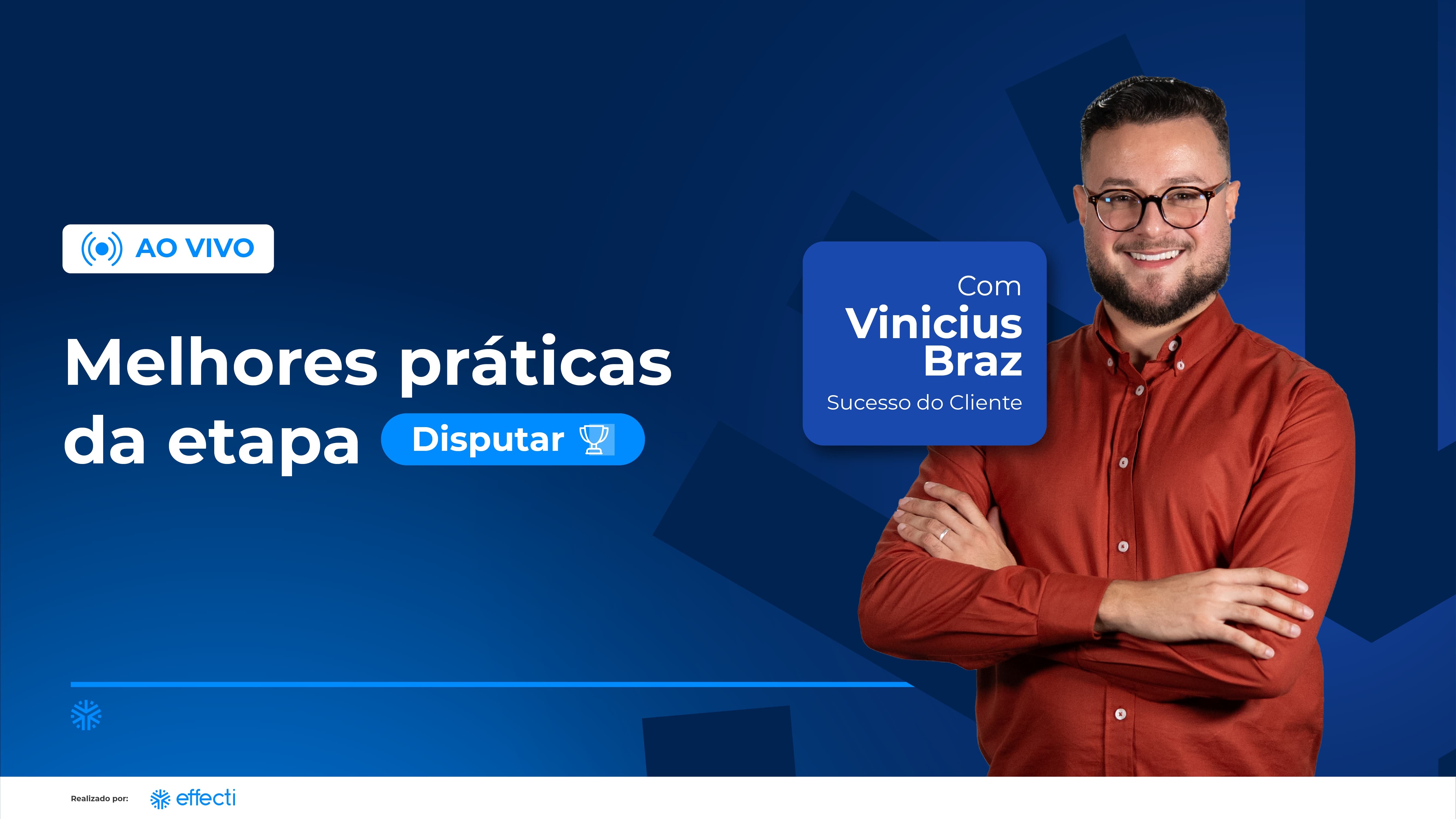 Quem conduzirá esse encontro será o Vinicius Braz, especialista em Sucesso do Cliente da Effecti, que vai compartilhar dicas, esclarecer dúvidas e ajudar você a ter mais segurança e agilidade nos seus processos.