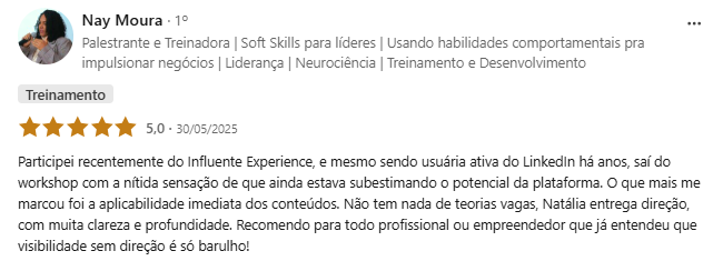 Veja o que disse a Nayara após participar da minha ultima imersão de Linkedin