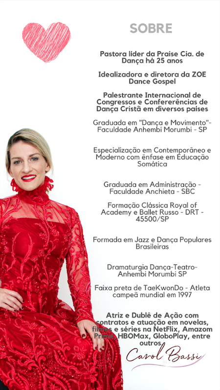 O Bispo John e a Pastora Carol Bassi são reconhecidos como pioneiros na dança cristã, dedicando suas vidas à promoção da expressão artística como forma de adoração. Com uma rica trajetória no ministério, eles fundaram o Praise Cia de Dança, com a missão de capacitar ministros de dança em todo o Brasil e mundo Através de workshops, imersões e eventos interdenominacionais, como a "IMERSÃO A DANÇA NA BÍBLIA", eles ensinam sobre as raízes bíblicas da dança e sua importância no culto contemporâneo.