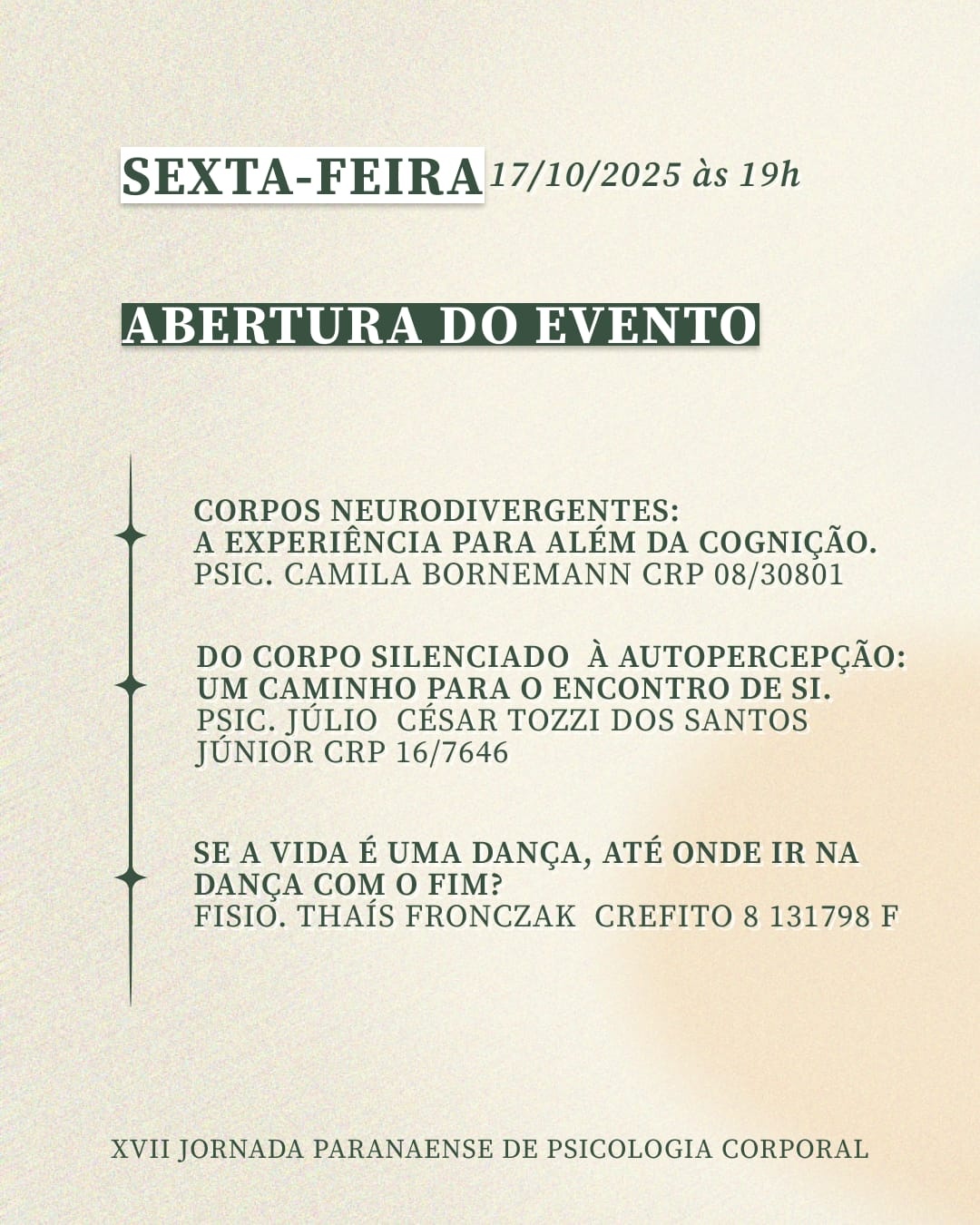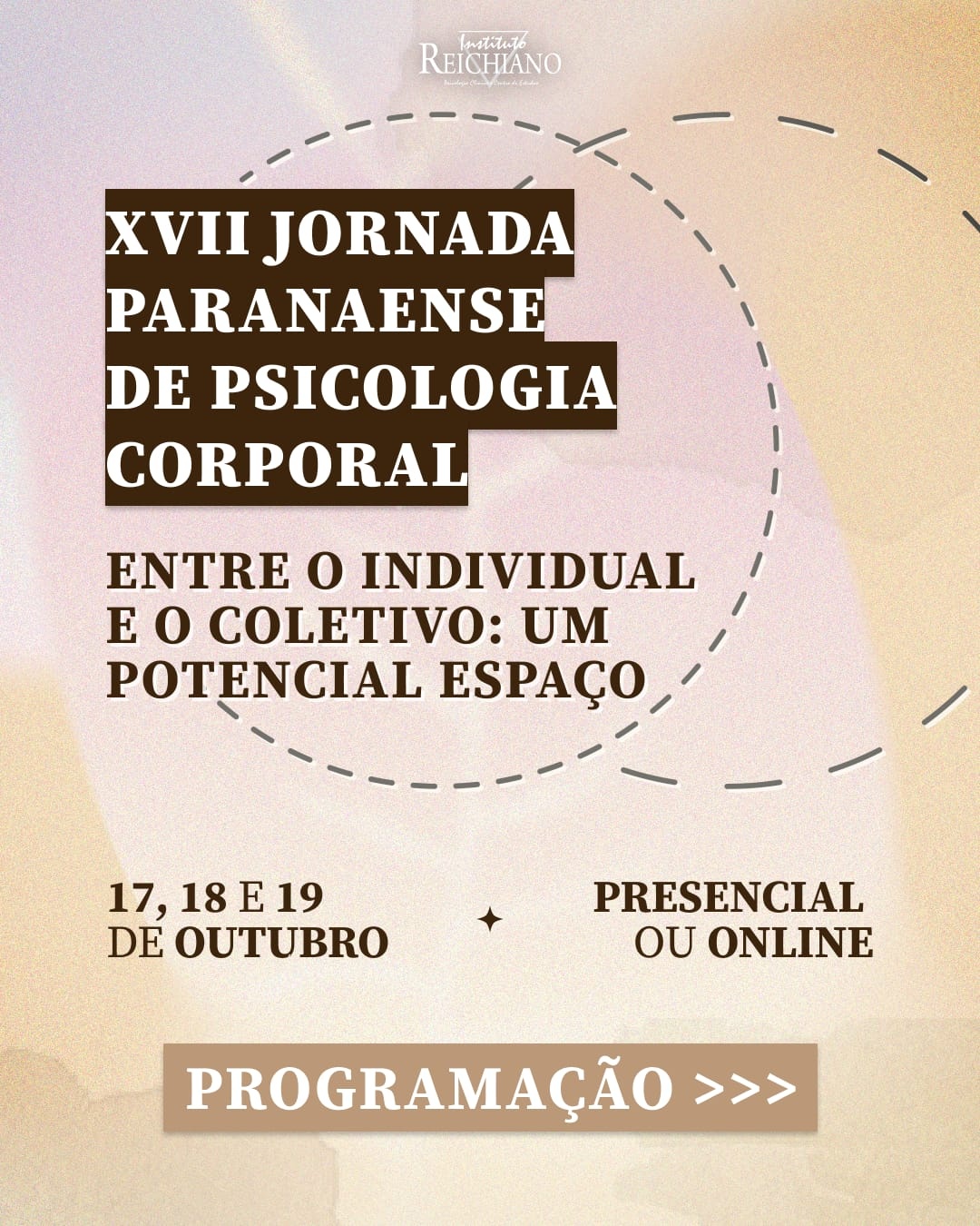 A Jornada Paranaense de Psicologia Corporal é um evento que visa apresentar as produções dos alunos e professores do Instituto Reichiano Psicologia Clínica e Centro de Estudos.