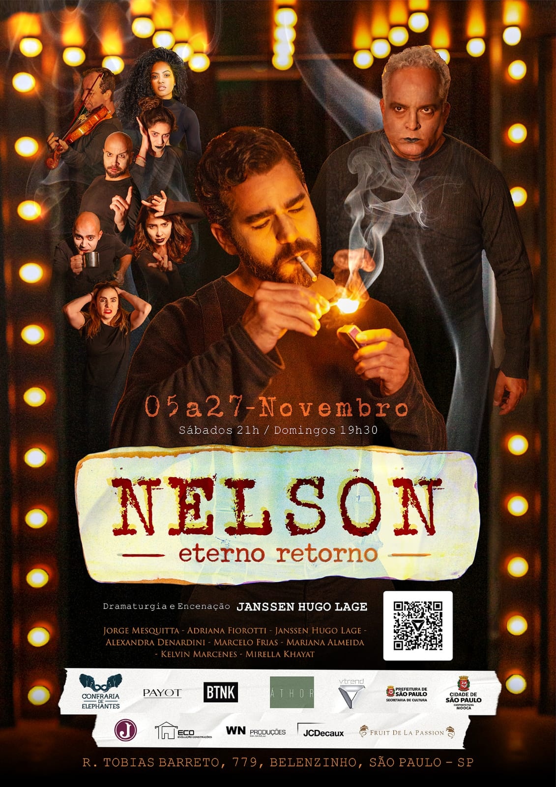 Inspirada na vida e na obra de Nelson Rodrigues (1912-1980), Nelson Eterno Retorno, leva o público a uma viagem intimista, lírica e investigativa que revela às razões que transformaram o jornalista, policial e esportivo, no mais importante dramaturgo brasileiro. A partir da relação com a filha cega, surda e muda e seu fascínio inesperado por uma de suas leitoras mais assíduas, seus pensamentos nos levam às lembranças e questionamentos existenciais de sua própria vida cotidiana até que a misteriosa leitora de sua coluna policial começa a lhe escrever cartas reveladoras. Cartas que tomam conta de sua mente, inspirando algumas de suas mais notáveis obras teatrais: histórias íntimas , ações, sentimentos, delírios, certezas e incertezas sobre a própria existência e sexualidade são alguns dos temas descritos por sua misteriosa admiradora; até que ambos resolvem materializar essa relação de trocas de cartas, no mundo real para o delírio absurdo e festejo de um pornográfico apaixonado.