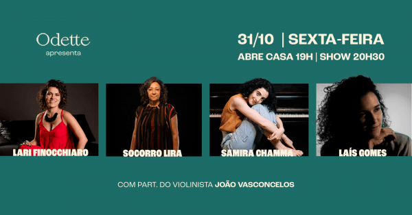 Destinação dos Recursos: A maior parte do valor arrecadado com os ingressos é destinada ao artista e o remanescente à viabilização desta experiência na Odette, uma casa de cultura independente.