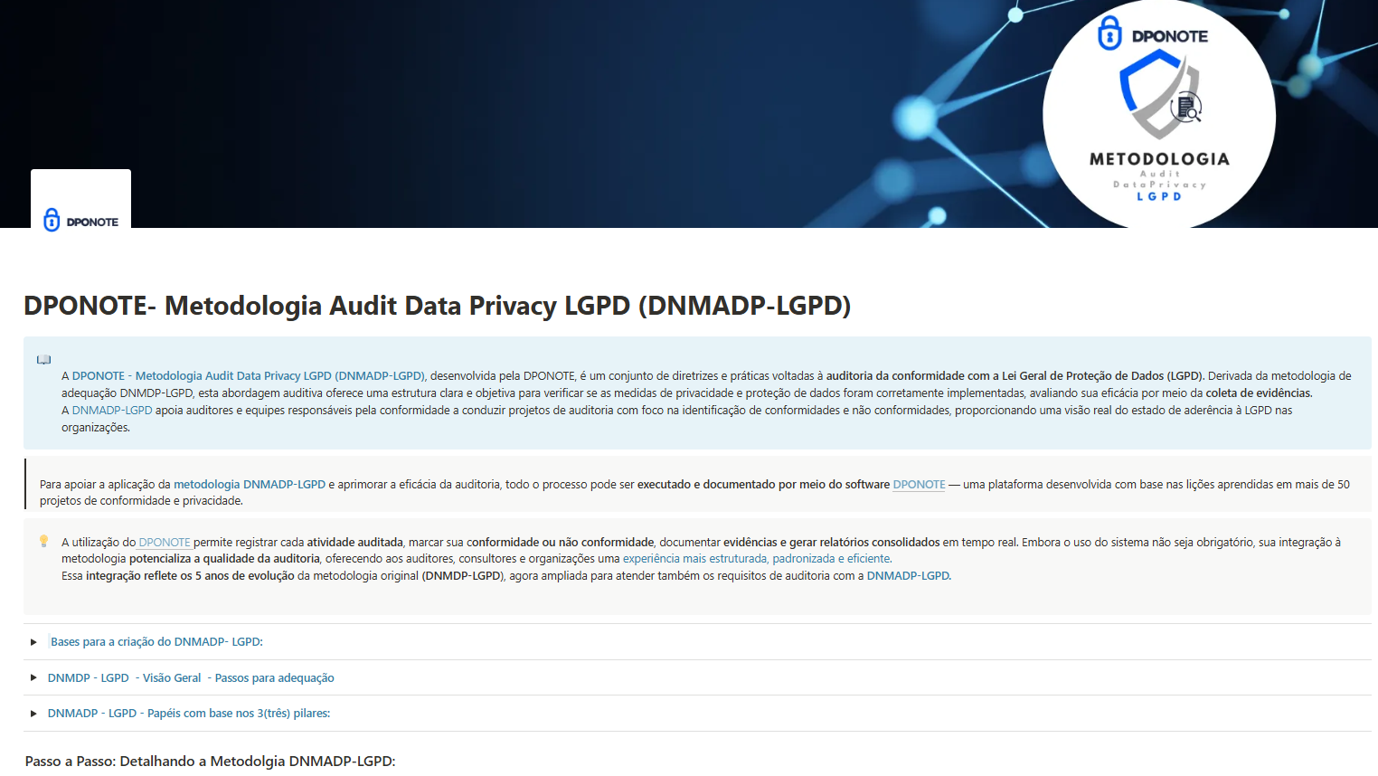 Este curso apresenta a DNMADP-LGPD, uma metodologia prática e inovadora desenvolvida pela DPONOTE para auditorias internas e externas de conformidade com a Lei Geral de Proteção de Dados (LGPD).