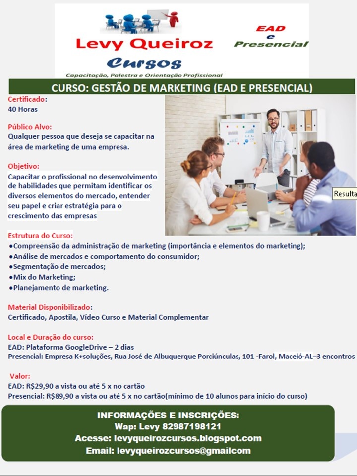Os cursos da empresa Levy Queiroz Cursos, são ministrados pelo Profª Levy de Queiroz Carmo, que tem a formação em Estudos Avançados no Programa de Doutoramento em Educação, Mestrado em Recursos Humanos e Gestão do Conhecimento, Especialização em Administração Hospitalar e Graduação em Administração de Empresas. Atuou como Coordenador Administrativo e em diversas atividades administrativa por mais de 20 anos. Atualmente é Professor Universitário, Instrutor de Cursos, Palestrante e Consultor.