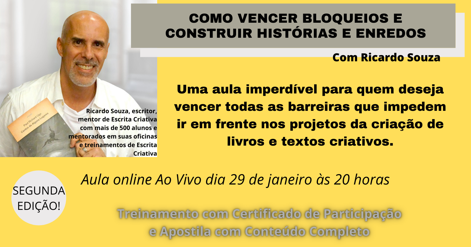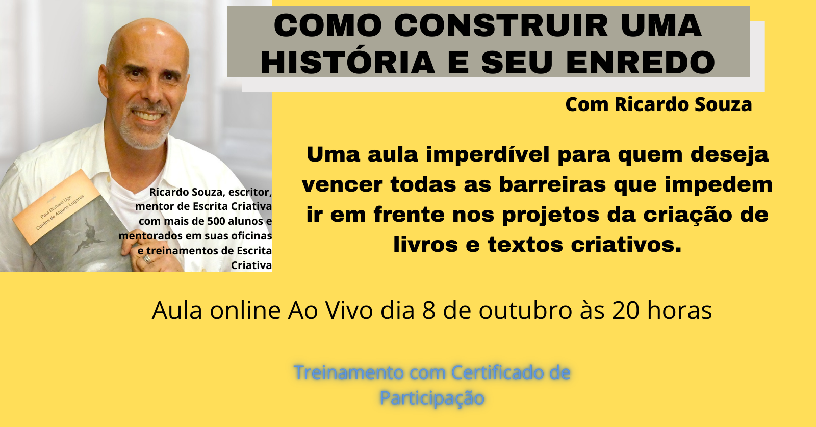 Eu sou Ricardo Souza e convido você para participar de um curso completamente diferente dos conteúdos apresentados em aulas de Escrita Criativa. Antes de mais nada, preciso contar pra você, como cheguei até a criação desta jornada.