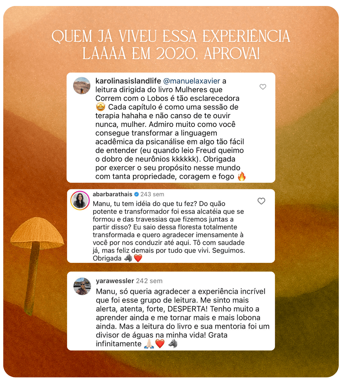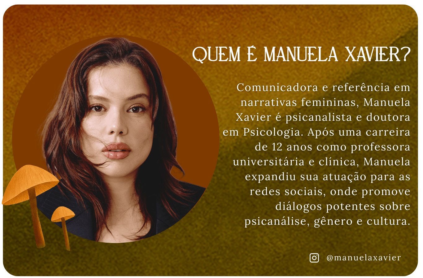 Influenciadora, doutora em psicologia e referência em narrativas femininas. Manuela Xavier tem uma habilidade única de criar conexões profundas com mulheres por meio de sua vivência e reflexões sobre autoestima, comportamento e protagonismo feminino.