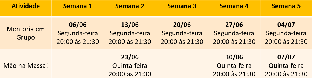 • 5 Encontros de Mentoria ao Vivo
