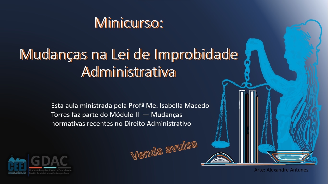 Este curso livre de 16h (Mudanças Normativas Recentes no Direito Administrativo), cujo módulo completo é formado por 10 aulas, também está disponível aqui no Sympla, com valor promocional, 50% de desconto para o módulo completo. Avalie e faça corretamente sua escolha, não há como fazer trocas entre os cursos CEEJ, após a compra.