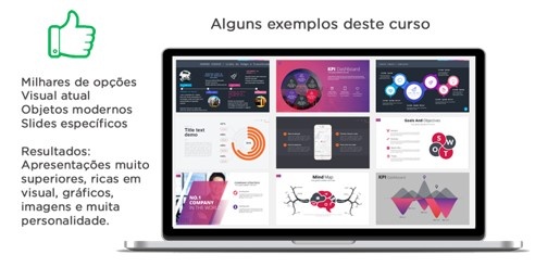 Ensinamos neste curso "como customizar modelos de slides profissionais” para apresentações de qualidade muito acima das convencionais, ricas em visual, gráficos e de forma bem mais rápida.