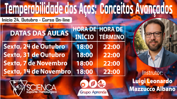 Na sua oitava edição, o Seminário de Processos de Tratamentos Térmicos também será realizado em formato online, da mesma forma como em 2020. Com o patrocínio Ouro da Villares Metals e Nitrex, patrocínio Prata das empresas Zwick Roell e Combustol, patrocínio Bronze da HEF Durferrit e Apoio da FACENS, o seminário será realizado nos dias 24, 25 e 26 de Agosto. Nos 3 dias do evento, das 14:30 as 17:30 horas da manhã, oradores qualificados da área se revezarão na apresentação de palestras técnicas. Temas principais: Tecnologias, Equipamentos, Simulação, Custos, Processos de TT entre outros.