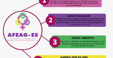 A Associação Feminina de Engenharia, Agronomia e Geociências do Espírito Santo - AFEAG-ES é uma entidade de classe que foi criada no dia 30 de julho de 2023 e já conta com mais de 300 associados(as)!
