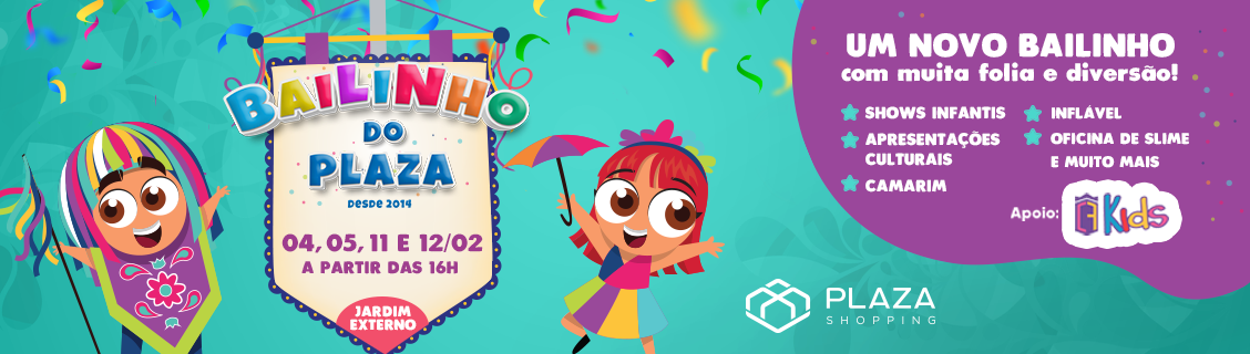 Uma das prévias carnavalescas infantis mais tradicionais do Recife está de volta e, agora, em novo formato. O Bailinho do Plaza está confirmado para acontecer nos dias 4, 5, 11 e 12 de fevereiro com uma programação repleta de shows, folia e diversão para toda a família. O evento será realizado ao ar livre, no jardim externo do Plaza Shopping, das 16h às 20h.