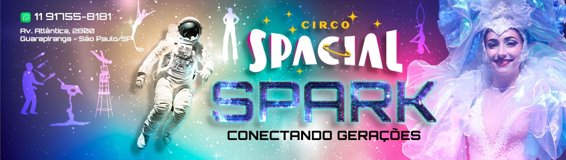 Prepare-se para uma viagem mágica e inesquecível! Em comemoração ao seu 39º aniversário, o Circo Spacial tem o orgulho de apresentar "SPARK", um espetáculo que promete encantar e surpreender todos os públicos. Mergulhe na história fascinante de um jovem andrógino que sonha em se transformar em uma luz radiante, levando-nos a uma jornada cósmica de autodescoberta e brilho. Com a ajuda de um astronauta, viajante do cosmos, SPARK segue a trilha luminosa do Circo Spacial. Cada apresentação é uma explosão de cores e emoções, trazendo à vida números circenses clássicos e inovadores. Malabaristas habilidosos, palhaços carismáticos, contorcionistas incríveis e muito mais compõem este espetáculo repleto de aventura e magia.