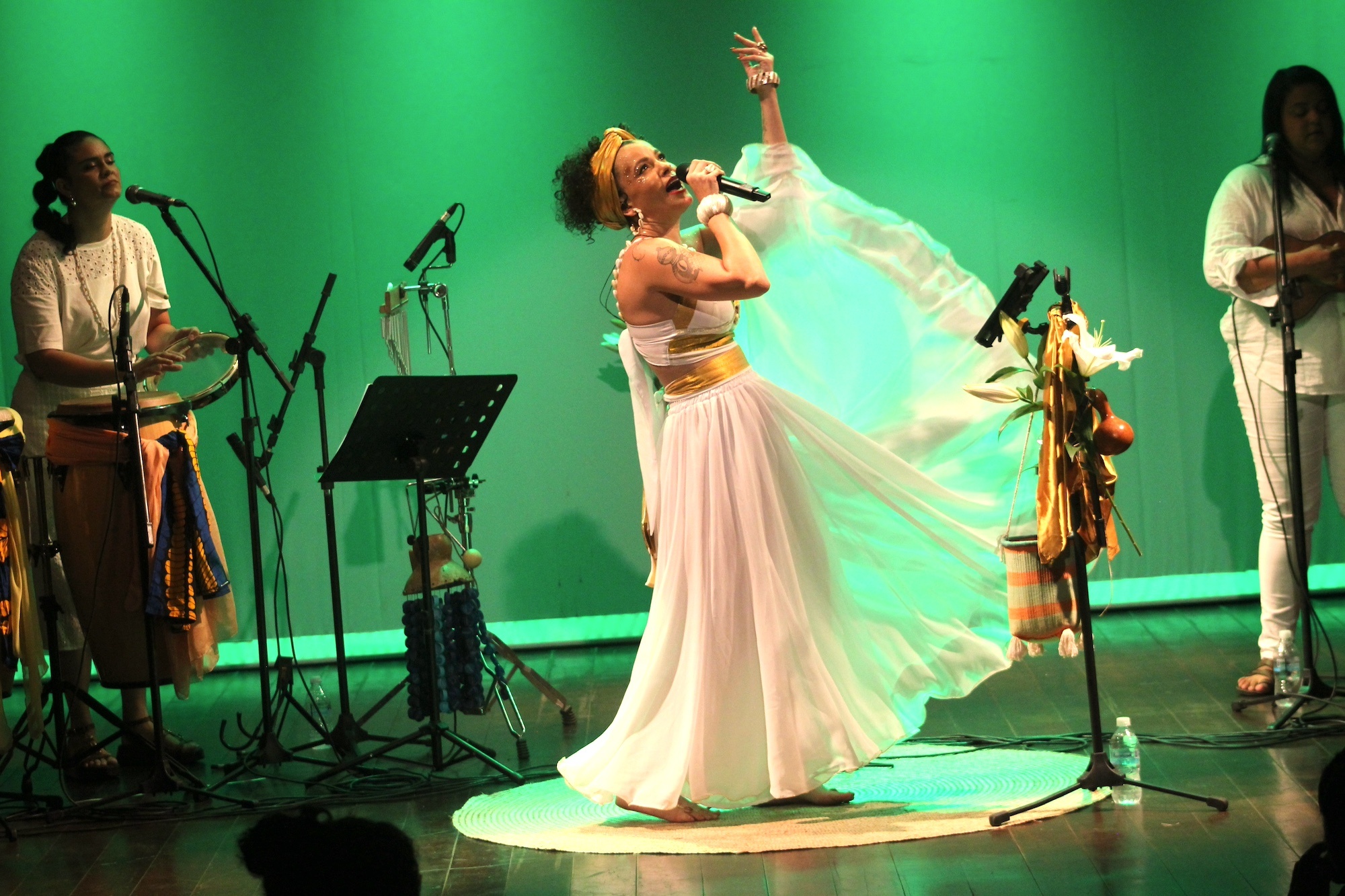 Mulher, Iyalorixá Omolokô, cantautora e artivista do axé, com mais de 20 anos de trajetória musical. Direciona seus estudos e trabalhos aos sambas de terreiro, ijexás, e outras derivações dessa vertente do samba, com performances inspiradas nas tradições de matriz africana e indígena, cultuadas nos terreiros de Umbanda e Candomblé, sobretudo, através de suas vivências enquanto mulher do Axé, reverenciando, assim, a ancestralidade do samba e a enorme contribuição do povo preto e indígena para construção cultura popular brasileira, como salienta a lei 10.639 de 2003.