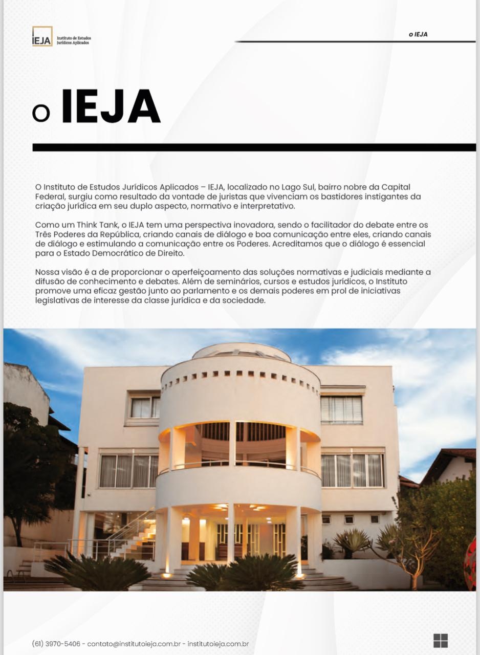 O Instituto de Estudos Jurídicos Aplicados – IEJA foi criado em 2019 com o objetivo de promover iniciativas de capacitação de juristas, gestores, acadêmicos, bem como informar à sociedade sobre agendas sensíveis e essenciais à democracia brasileira, além de fomentar pesquisas e estudos relevantes às instituições e a sociedade.