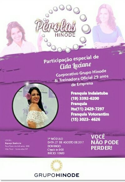 com presença de Cida Luciane a ( Cidinha ). 29 anos de história com Hinode, faz parte do corporativo e traz toda a experiencia como treinadora oficial .