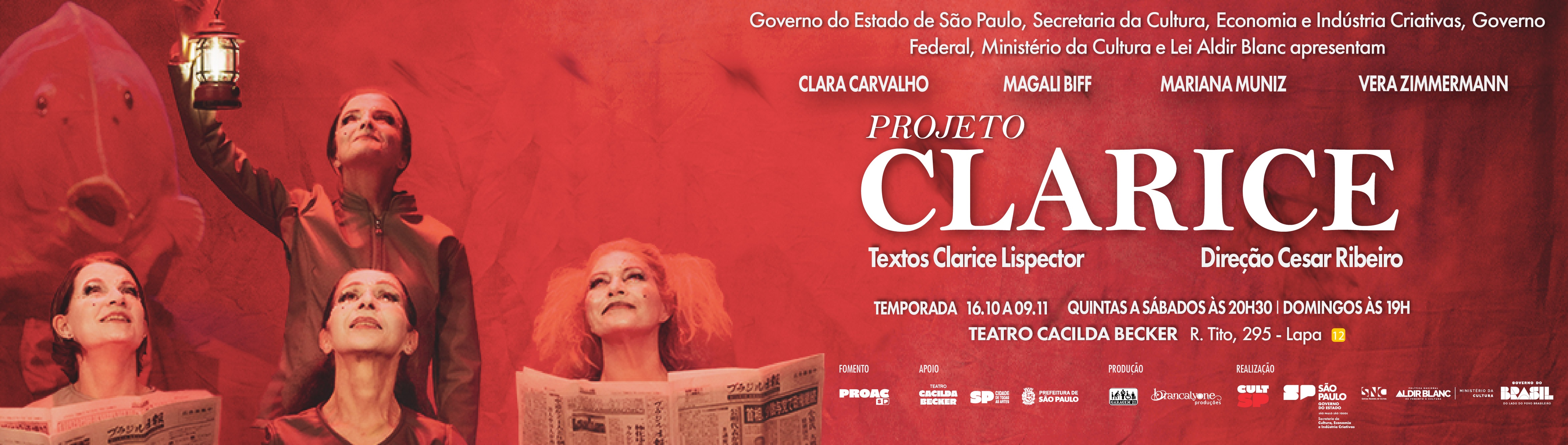 O espetáculo Projeto Clarice traz para o palco o encontro entre as atrizes Clara Carvalho, Magali Biff, Mariana Muniz e Vera Zimmermann e o diretor Cesar Ribeiro, com o desejo de refletir sobre o feminino a partir de temas que percorrem a obra de Clarice Lispector. Com adaptação também de Ribeiro, a obra foi construída a partir de cinco contos da escritora, Via Crucis, Menino a Bico de Pena, A Legião Estrangeira, Amor e O Ovo e a Galinha, que abordam questões como subjetividade e identidade, alteridade, família e afetos.