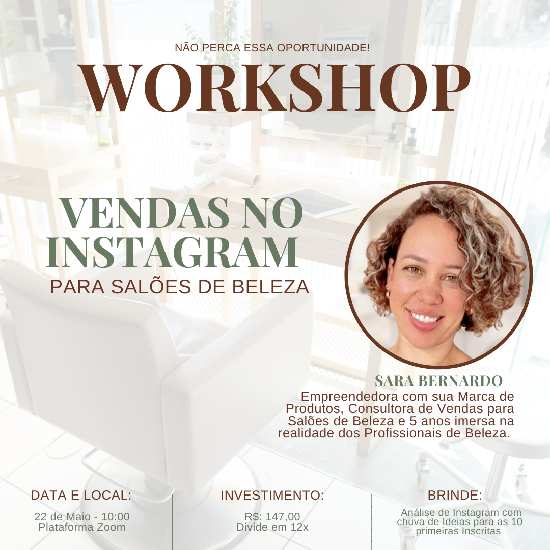 Com o objetivo de te ajudar a usar o Instagram como instrumento de Captação e Vendas para seu Salão, criei esse workshop Instagram que Vende - Para Salões de Beleza, com base em 5 anos de pesquisa e relacionamento com Profissionais do ramo presentes de todo o país.